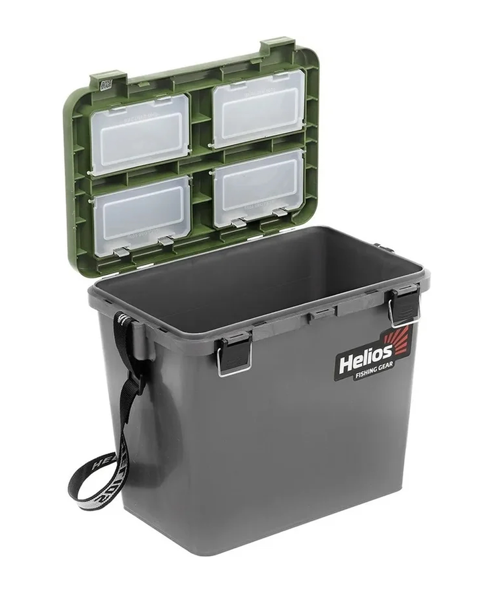 Ящик зимний рыболовный торговой марки Helios, изготовленный из ударопрочного, морозостойкого и в то же время легкого пластика, обеспечивает надежное хранение и транспортировку рыболовных снастей. Благодаря объему 19 литров, ящик вместит очень много полезных снастей для рыбалки. Основной отсек предназначен для переноски рыболовных снастей, термоса, так же удобен для перевозки улова. На внутренней стороне крышки размещены 4 отделения с полупрозразчными крышечками для хранения мелких аксессуаров. Удобный отсек со съемными перегородками позволяет разместить зимние удочки. Надежные и прочные замки не позволят изделию самопроизвольно открыться, а удобный наплечный ремень поможет комфортно его транспортировать. Пластиковый каркас выдерживает низкие температуры до -40˚С, не пропускает и не впитывает воду. Мягкое незамерзающее сиденье на крышке ящика, аккумулирующее тепло, позволит рыболову комфортно рыбачить с ящика долгое время. На дне ящика расположены специальные насечки против скольжения по льду. Летом подобный ящик несомненно пригодится для береговой рыбалки, когда необходимо иметь все снасти под рукой. Характеристики: Нагрузка: 130 кг. По проведенным тестированиям максимальная нагрузка ящика - 210 кг. Объем: 19 л. Длина: 39 см (по верху), 32 см - по низу. Ширина: 26 см Высота: 40 см Вес ящика: 2 кг. Цвет: серый/хаки.
