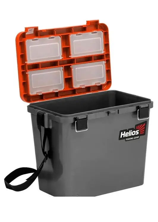 Ящик рыболовный зимний односекционный серого/оранжевого цвета (HS-IB-19-GO-1) от производителя Helios изготовлен из ударопрочного, морозостойкого и лёгкого пластика. Объём ящика составляет 19 литров, он предназначен для хранения и транспортировки рыболовных снастей, термоса и улова. Внутри крышки есть четыре отделения для хранения мелких аксессуаров. Замки ящика надёжны и прочны, а мягкое сиденье на крышке позволяет комфортно рыбачить долгое время.