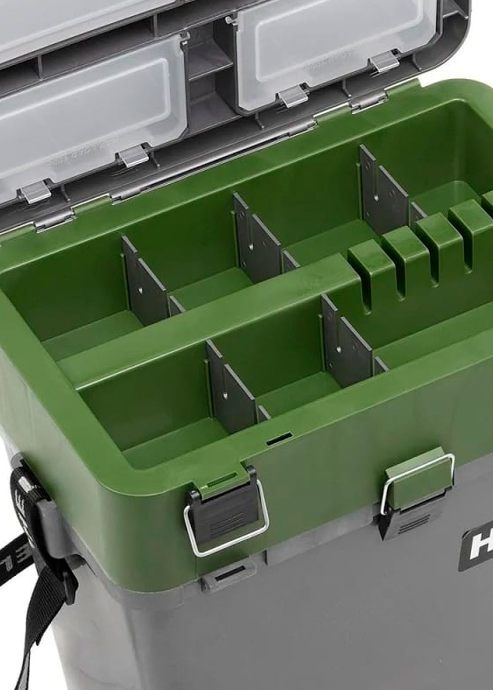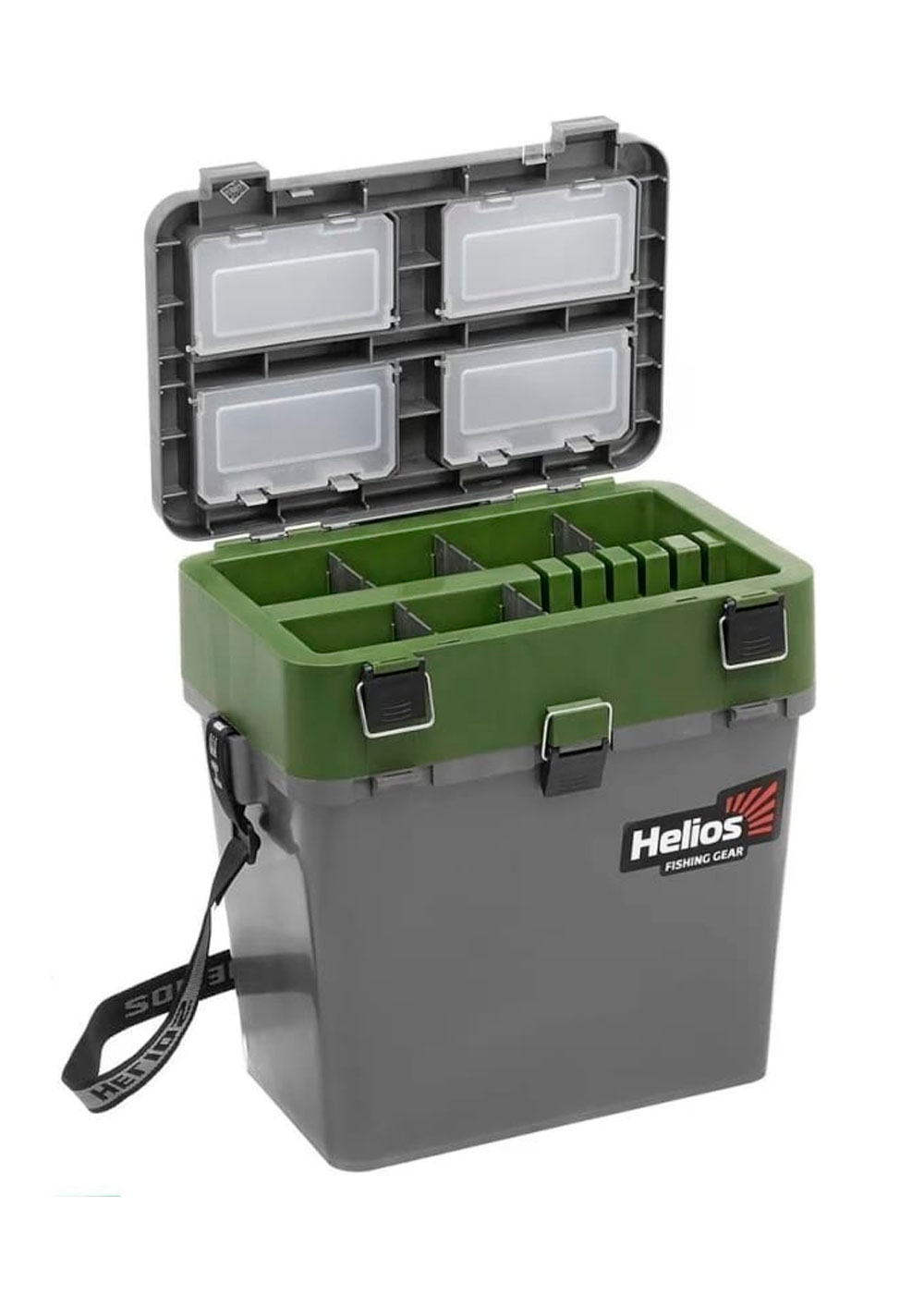 Ящик зимний рыболовный торговой марки Helios, изготовленный из ударопрочного, морозостойкого и в то же время легкого пластика, обеспечивает надежное хранение и транспортировку рыболовных снастей. Благодаря объему 19 литров, ящик вместит очень много полезных снастей для рыбалки. Основной отсек предназначен для переноски рыболовных снастей, термоса, так же удобен для перевозки улова. На внутренней стороне крышки размещены 4 отделения с полупрозразчными крышечками для хранения мелких аксессуаров. Удобный отсек со съемными перегородками позволяет разместить зимние удочки. Надежные и прочные замки не позволят изделию самопроизвольно открыться, а удобный наплечный ремень поможет комфортно его транспортировать. Пластиковый каркас выдерживает низкие температуры до -40˚С, не пропускает и не впитывает воду. Мягкое незамерзающее сиденье на крышке ящика, аккумулирующее тепло, позволит рыболову комфортно рыбачить с ящика долгое время. На дне ящика расположены специальные насечки против скольжения по льду. Летом подобный ящик несомненно пригодится для береговой рыбалки, когда необходимо иметь все снасти под рукой.