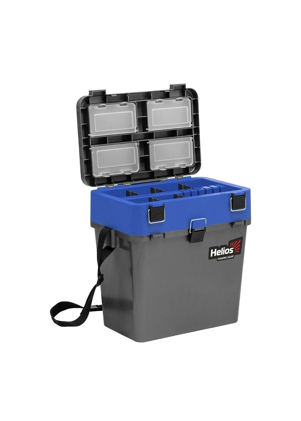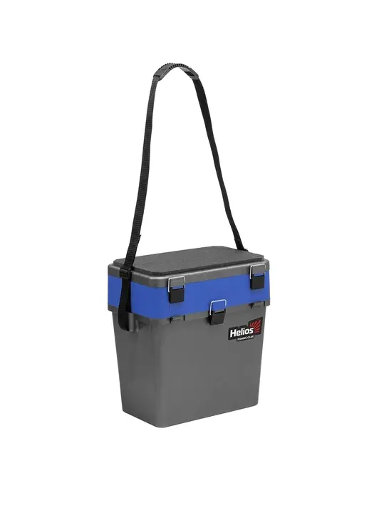 Зимний рыболовный ящик Helios модели HS-IB-19-GB в серо-синей цветовой гамме — вместительная и функциональная модель объёмом 19 литров, изготовленная из прочного морозостойкого пластика, выдерживающего температуры до −40°C. Оснащён мягким сиденьем на крышке, надёжными замками и плечевым ремнём для удобной транспортировки. На внутренней стороне крышки расположены 4 отделения с прозрачными крышками для мелких аксессуаров. Прочный корпус выдерживает нагрузку до 130 кг, а специальные насечки на дне предотвращают скольжение по льду. Ящик водонепроницаем, не впитывает влагу и подходит как для зимней рыбалки, так и для летнего использования благодаря продуманной конструкции и удобству размещения снастей.