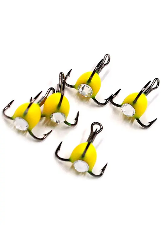 Крючок-тройник «ЯМАН» с камнем, размер 16 (INT), цвет ФЖ, состоит из трёх крючков, соединённых вместе. Он используется для ловли хищных рыб, таких как щука, судак и окунь. Крючок изготовлен из прочной стали и имеет специальное покрытие, которое защищает его от коррозии.