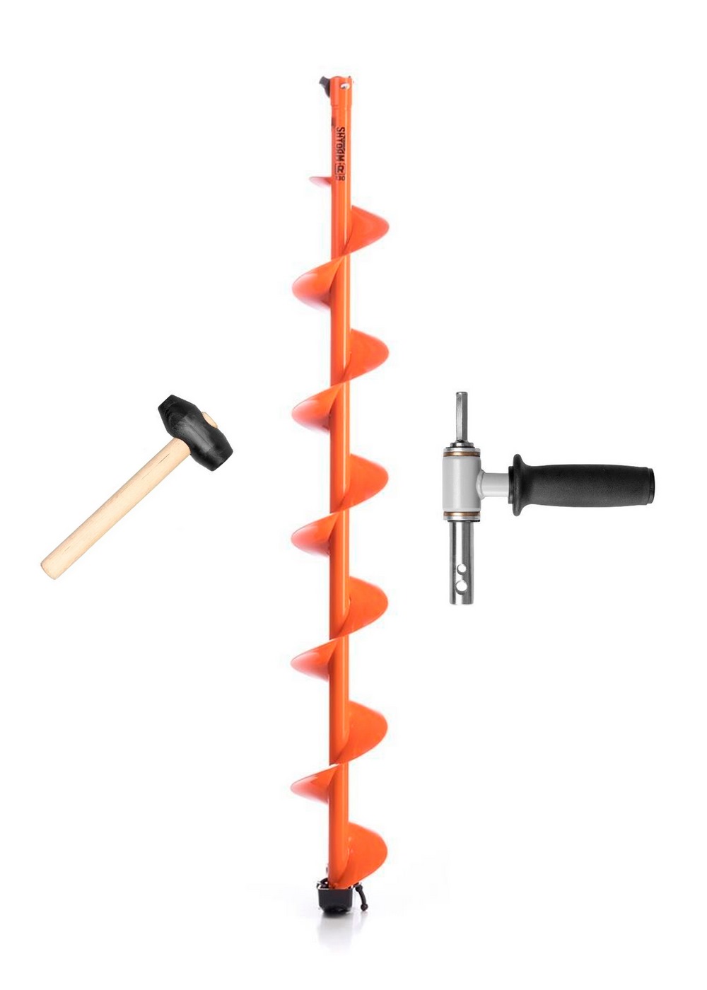 В комплект также входит молоточек, который позволяет легко и быстро вывинчивать или закручивать шнек в грунт. Молоточек обеспечивает высокую точность и удобство в использовании.