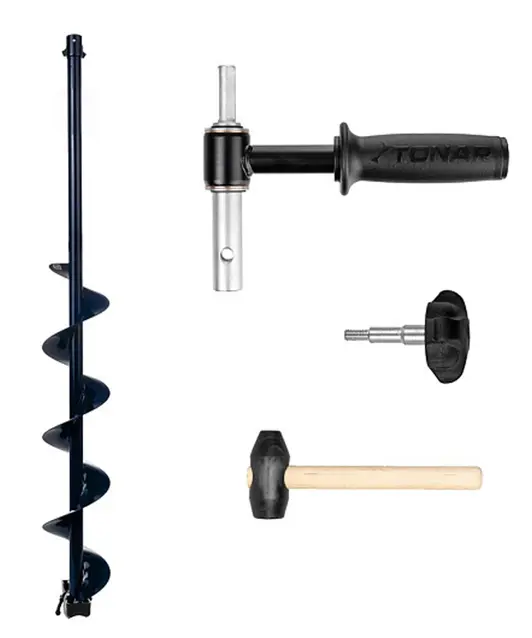 Комплект «Шнек для шуруповерта ALTAY ENERGY 150R + адаптер АШ20ПС + молоточек» от производителя Тонар включает в себя шнек диаметром 150 мм, адаптер АШ20ПС и молоточек. Этот набор предназначен для быстрого и комфортного бурения льда с использованием шуруповёрта.Характеристики: