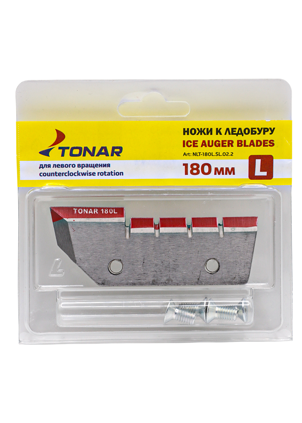 Комплект плоских ножей левого вращения (диаметр бурения 180 мм) предназначен для ледобуров ТОНАР 180L, ТОРНАДО-М2 180L, Helios 180L, BURAN 180L с плоскими площадками рабочей части. Нож имеет 2 отверстия. Ножи имеют оптимальные углы аттаки, изготовлены из высокоуглеродной легированной стали. После закалки имеют твердость 57-62 HRC, что позволяет многократно перетачивать ножи без ухудшения их первоначальных свойств. Компания "ТОНАР" провела серьезную технологическую модернизацию производства ножей к ледобурам: - приобретено высокотехнологичное итальянское шлифовальное оборудование марки MVM "La 500"; - введена дополнительная операция финишной шлифовки ("доводка") лезвия всех ножей: теперь лезвие ножа идеально острое и держит заточку намного дольше; - лезвие ножей обрабатывается специальным консервационным составом, который разработан для оборонной промышленности. Характеристики: Материал: легированная высокоуглеродистая сталь марки СТ65Г. Размер ножа: 88х33,5 мм. Межцентровое отверстие: 40 мм. Комплект включает 2 ножа и 4 винта. Ножи упакованы в блистер.