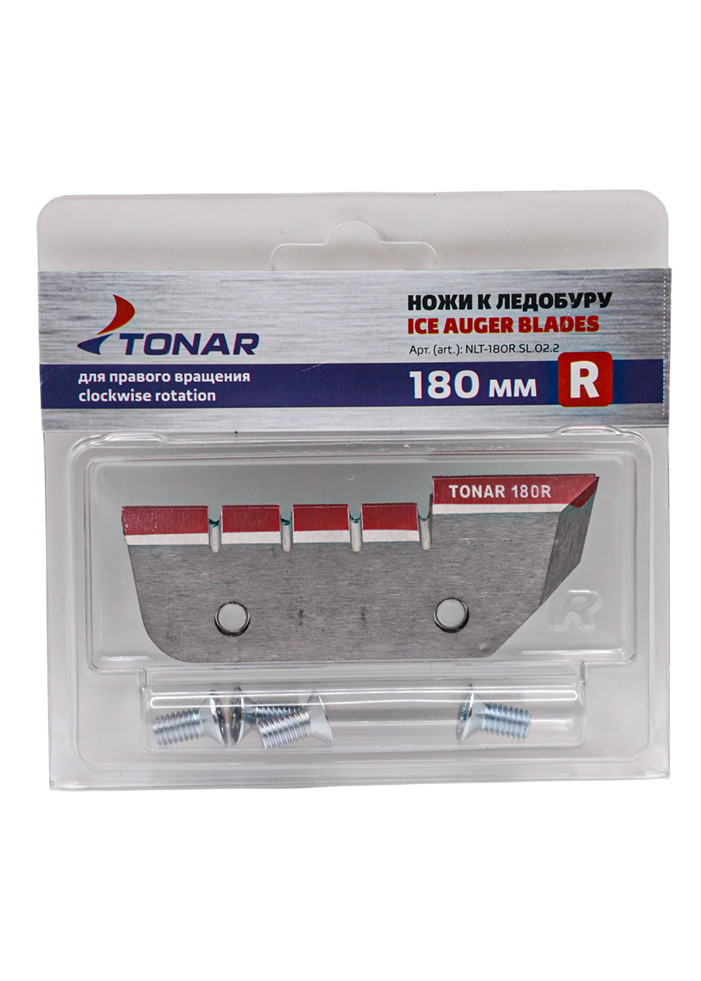 Комплект плоских ножей правого вращения (диаметр бурения 180 мм) предназначены для ледобуров ТОРНАДО-M2 180R, BURAN 180R, шнеков MOTOSHTORM 180R и ELECTROSHTORM 180R с плоскими площадками рабочей части.Ножи имеют оптимальные углы аттаки, изготовлены из высокоуглеродной легированной стали. После закалки имеют твердость 57-62 HRC, что позволяет многократно перетачивать ножи без ухудшения их первоначальных свойств.