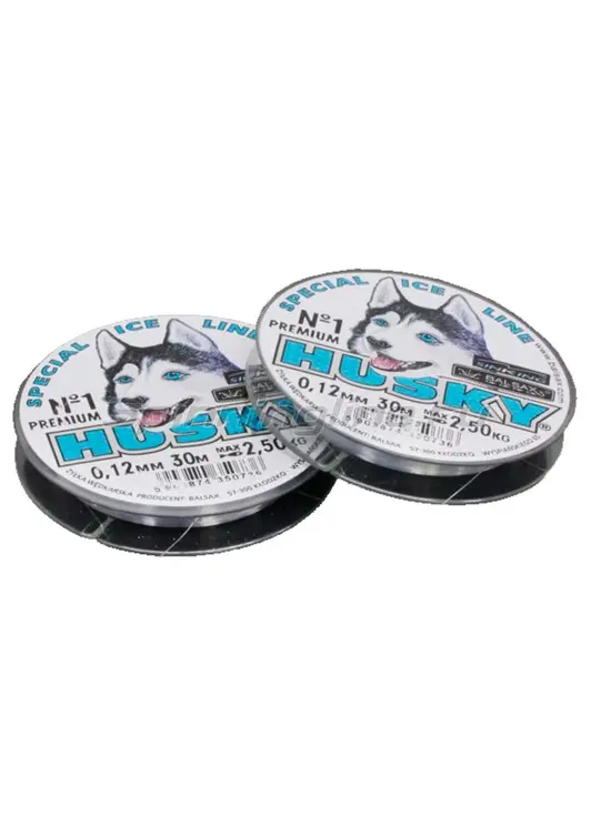 Еще одна подсерия лесок Хаски с разрывной нагрузкой от 1,05 до 8 кг и толщиной от 0,08 до 0,25 мм. Предназначение линейки - подледная ловля. Рабочие свойства сохраняются до -40 градусов. Экспертам Balsax удалось добиться у Husky Premium гармоничного сочетания сенсорики и растяжимости. С таким монофилом просто делать оперативные подсечки, отслеживать деликатные поклевки. Он хорошо амортизирует рывки. Прочностной запас сохраняется хорошо даже на узлах при их правильной вязке. Леска тонущая. Низкая память исключает скручивание, потому игра даже самых легких приманок не собьется. Производится линейка на польском заводе, что говорит о тщательном контроле качества.