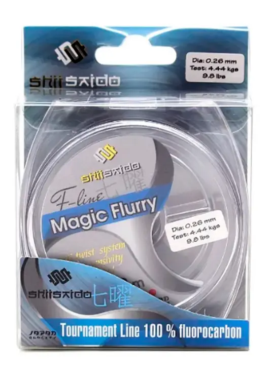 Леска флюорокарбоновая Shii Saido Magic Flurry. Длина 30 метров. Диаметр 0.226 миллиметров. Тест на разрыв 3.53 килограмма. Прозрачного цвета.
