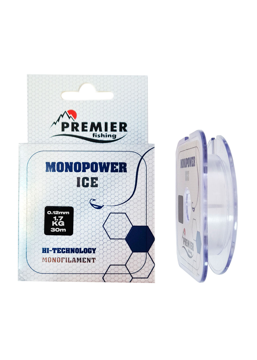 Леска MONOPOWER ICE от PREMIER fishing с параметрами 0,20мм/30м представляет собой модель из прозрачного нейлона, предназначенную для зимней рыбалки. Благодаря высокой прочности на узлах и стойкости к истиранию данная леска обеспечивает комфортное и длительное использование. Минимальная “память” материала позволяет использовать ее на водоемах с быстрым течением без потери чувствительности. Незаметная в воде, она прекрасно подойдет для ловли осторожных видов рыб.