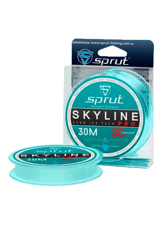 Леска Зимняя "Sprut" SKYLINE 3D Fluorocarbon Composition IceTech PRO (Cyan/0,205mm/6,35kg/30m)