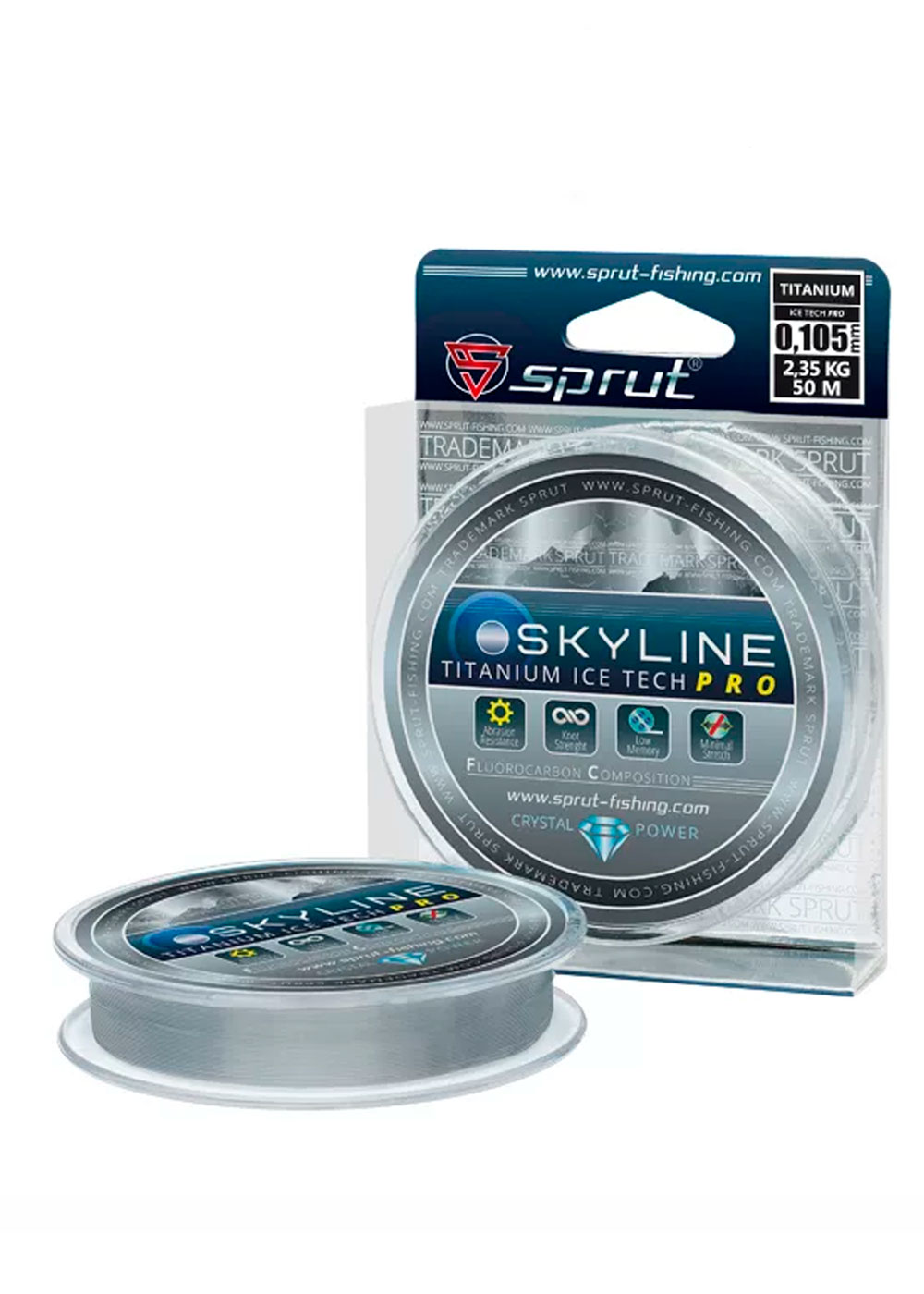 Леска зимняя “Sprut” Skyline Fluorocarbon Composition IceTech Pro Titanium с диаметром 0.205 миллиметров, прочностью до 6,35 килограмма и длиной 50 метров разработана специально для зимней рыбалки. Изготовлена из высокопрочного флюорокарбона с повышенной устойчивостью к механическим повреждениям и низким температурам. Имеет стальной блеск, что делает ее хорошо видимой на снегу и льду.
