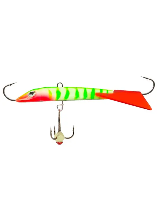 - Дополнительная информация: впаянные одинарные крючки и подвесной тройник с фосфоресцирующей каплей, люминесцентный окрас