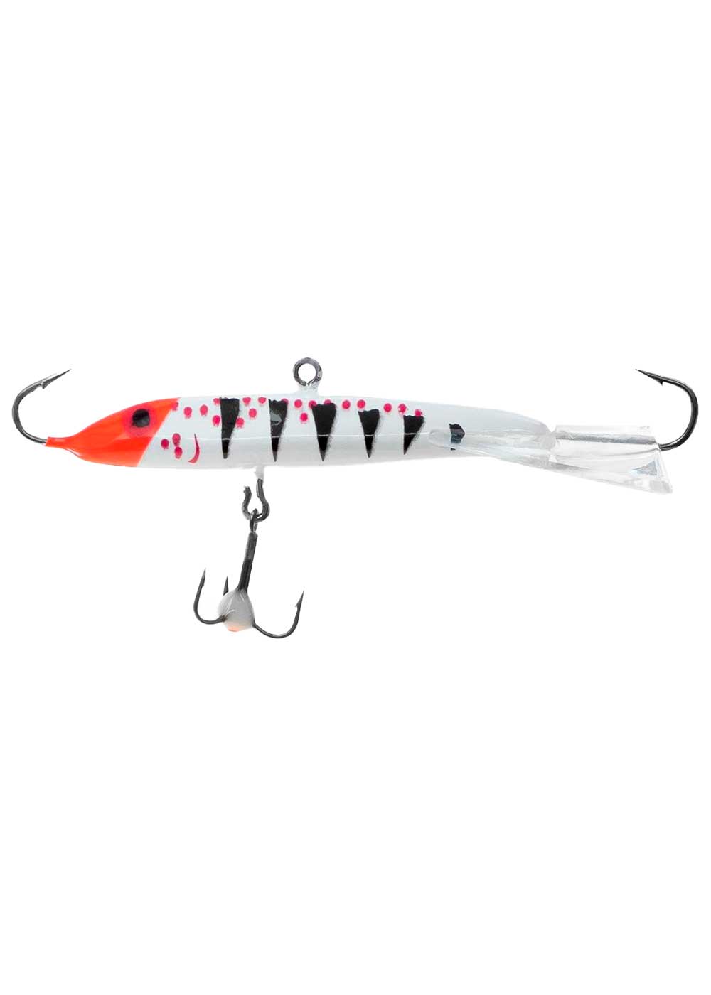 Балансир №17 - приманка для рыбной ловли в зимнее время. Выглядит как небольшая рыбка белого цвета с красной головой и черными полосками по бокам. На приманку охотно клюют окунь, щука, судак и другие хищные рыбы.