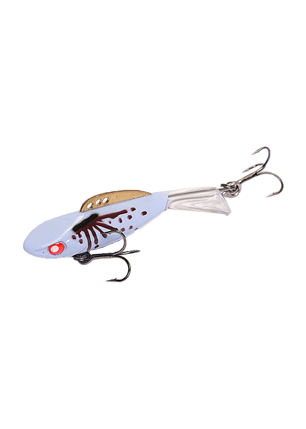 Среди основных отличий, которыми характеризуется балансир Lucky John Pro Series Mebaru, обязательно следует выделить отсутствие, характерных для изделий данного типа, одинарных крючков, выходящих из носа и хвоста приманки. При этом задний крючок заменен на свободно закрепленный тройник, который постоянно пребывает в движении. Для крепления тройника предназначен обычный крючок. Он изготовлен из довольно прочной и толстой проволоки и выступает из хвостовой части. Учитывая, что балансир Lucky John Pro Series Mebaru, как правило, применяется в условиях наличия ледяной корки на водоемах, отсутствие переднего крючка можно с полной уверенностью назвать преимуществом. Благодаря такому решению, удается значительно уменьшить количество сходов. Ведь именно передний крючок очень часто цепляется за нижнюю кромку льда в процессе самой последней стадии вываживания.