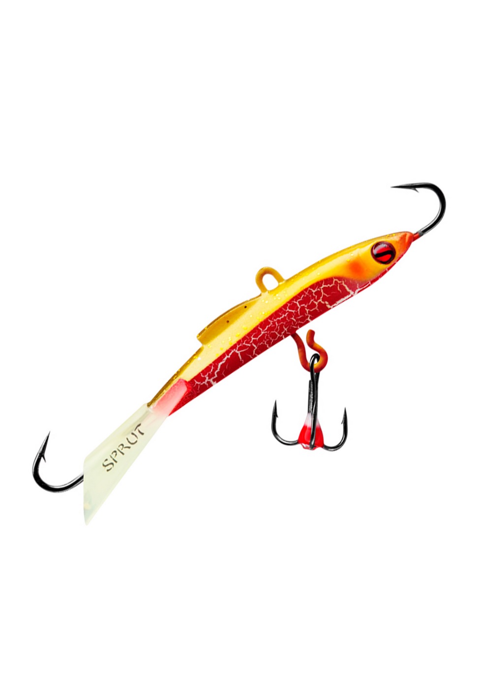 Балансир Sprut Usuri - это еще одна искусственная рыболовная приманка для зимней ловли. Она также имеет форму маленькой рыбки, но отличается от Garuto размером (№6) и расцветкой. Вес этого балансира составляет 11 грамм, а длина - 55 мм. Буква RG в названии означает, что балансир имеет красную голову, что может привлечь хищную рыбу.