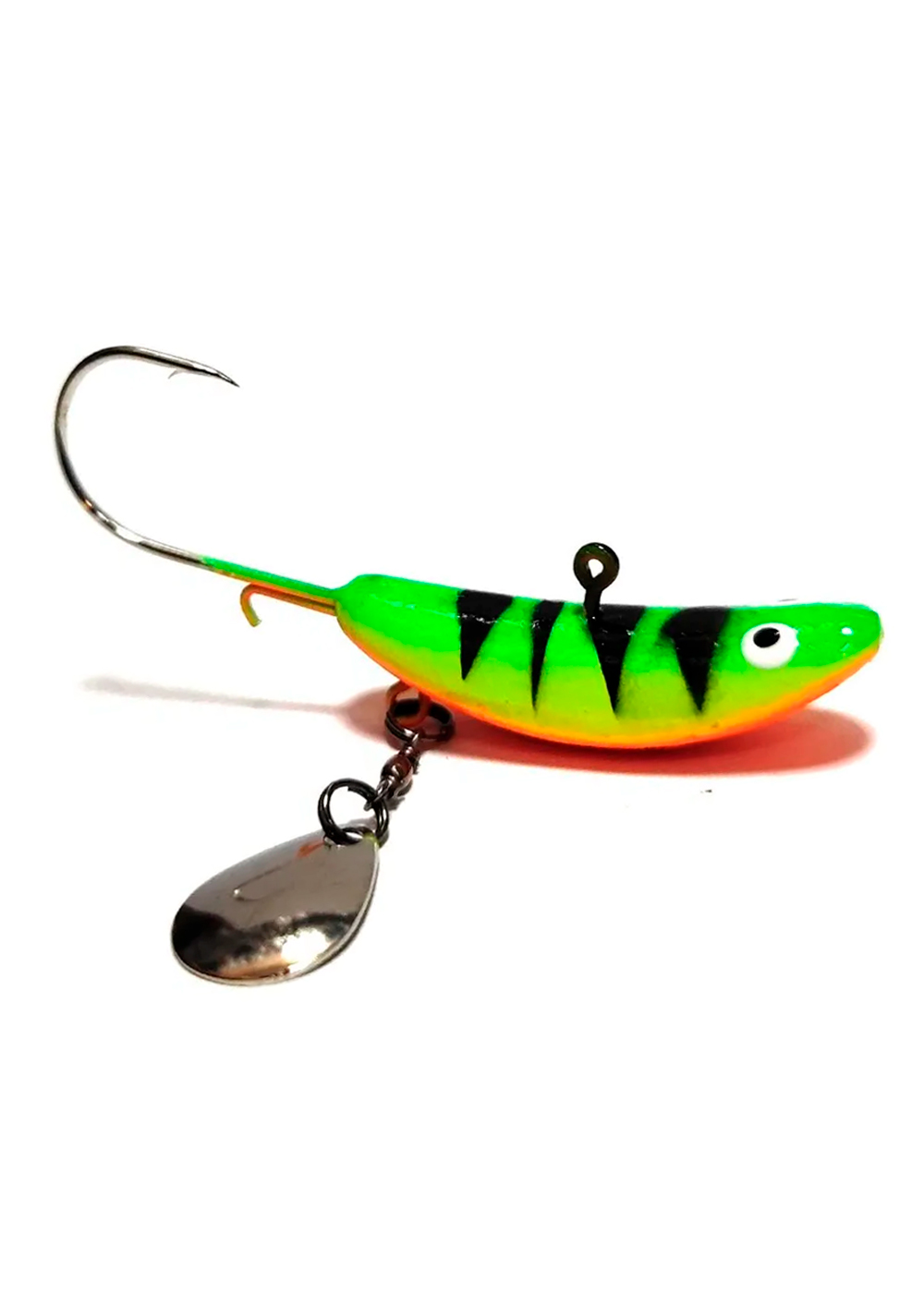 Джиг-балансир от Marlin’s - это развитие разного рода "стукалок" для придонной ловли судака, берша, налима и других хищников на тюльку или червя. С успехом применяется как летом с лодки, так и при подледной рыбалке. Вращение высокоподвижного лепестка воздействую на боковую линию и другие органы осязания, привлекает хищника,  с большого расстояния даже при незначительных колебаниях удилища. Специальный крючок-зацеп надежно удерживает приманку на крючке, сохраняя ее привлекательность при "холостых" поклевках. Разнообразные расцветки выполнены UV-активными красками, что обеспечивает их привлекательность даже на большой глубине. В условиях низкой освещенности эффективно использовать цвета со светонакопителем.