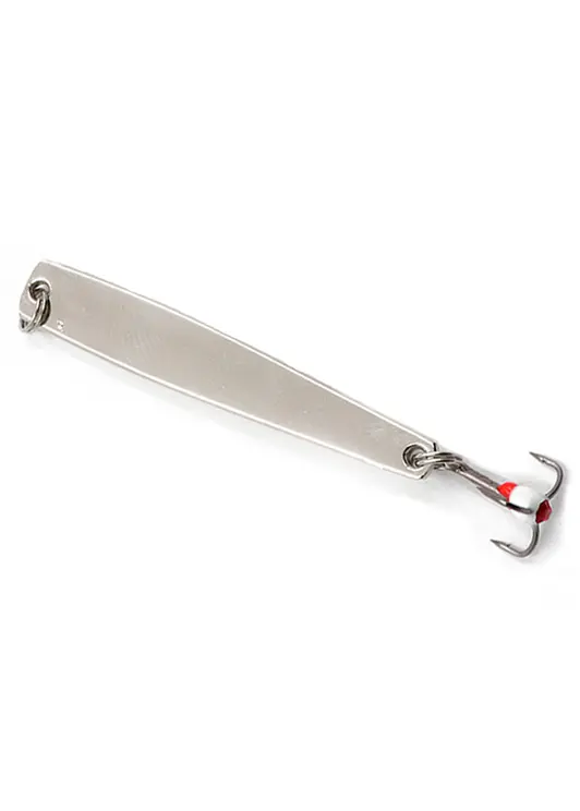 Вертикальная блесна Namazu “Yeti” длиной 60 мм и весом 15 граммов. Цвет S602 (серебристый с синими полосками). Крючок №4. Для зимней рыбалки на окуня, судака, щуку.