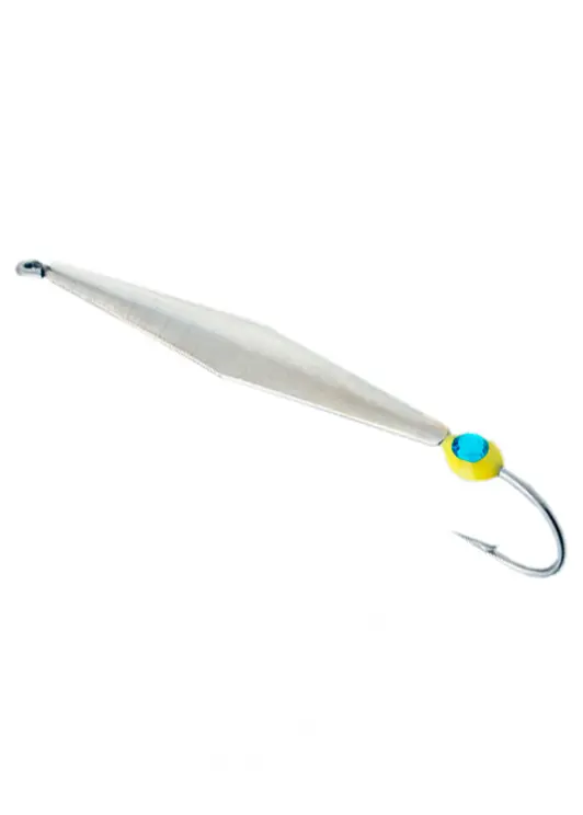 Sprut Sutton - блесны для зимней рыбалки. Конструкция колебалок позволяет им соблазнительно играть при вертикальных проводках. Приманки Sprut Sutton имеют ромбовидное, вытянутое тело. Продольная ось разделяет его на две грани. На цевье одинарника закреплен декоративный элемент с круглым желтым основанием и голубым кристалликом. Эта броская деталь поддразнивает хищников. Она хорошо заметна, так как цвет самих блесен можно назвать "традиционными": медный, цвета никеля или латуни. Основная потенциальная добыча - популярные щука и окунь.