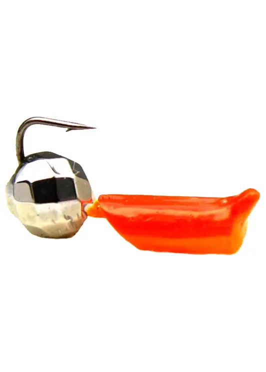 Мормышка «Столбик оранжевый + шар гранёный серебро» имеет вес 0,65 грамма и размер 4 миллиметра. Она изготовлена из вольфрама и покрыта водостойкой краской оранжевого цвета. К мормышке прикреплён одинарный крючок.