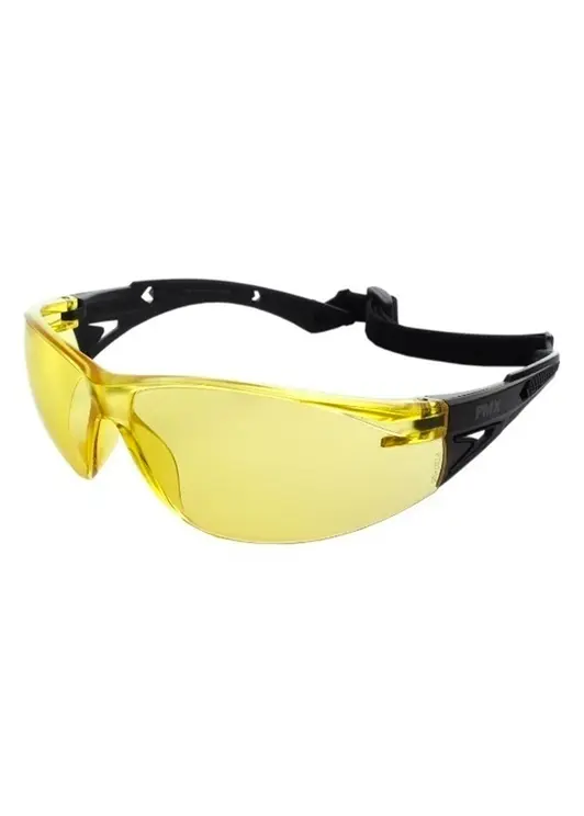 Очки c желтыми ударопрочными поликарбонатными линзами светопропускаемостью 89%. Обеспечивают защиту глаз спереди и сбоку от частиц, летящих со скоростью 400м/с. Нанесено ANTI-FOG покрытие, возможна установка диоптрической вставки.