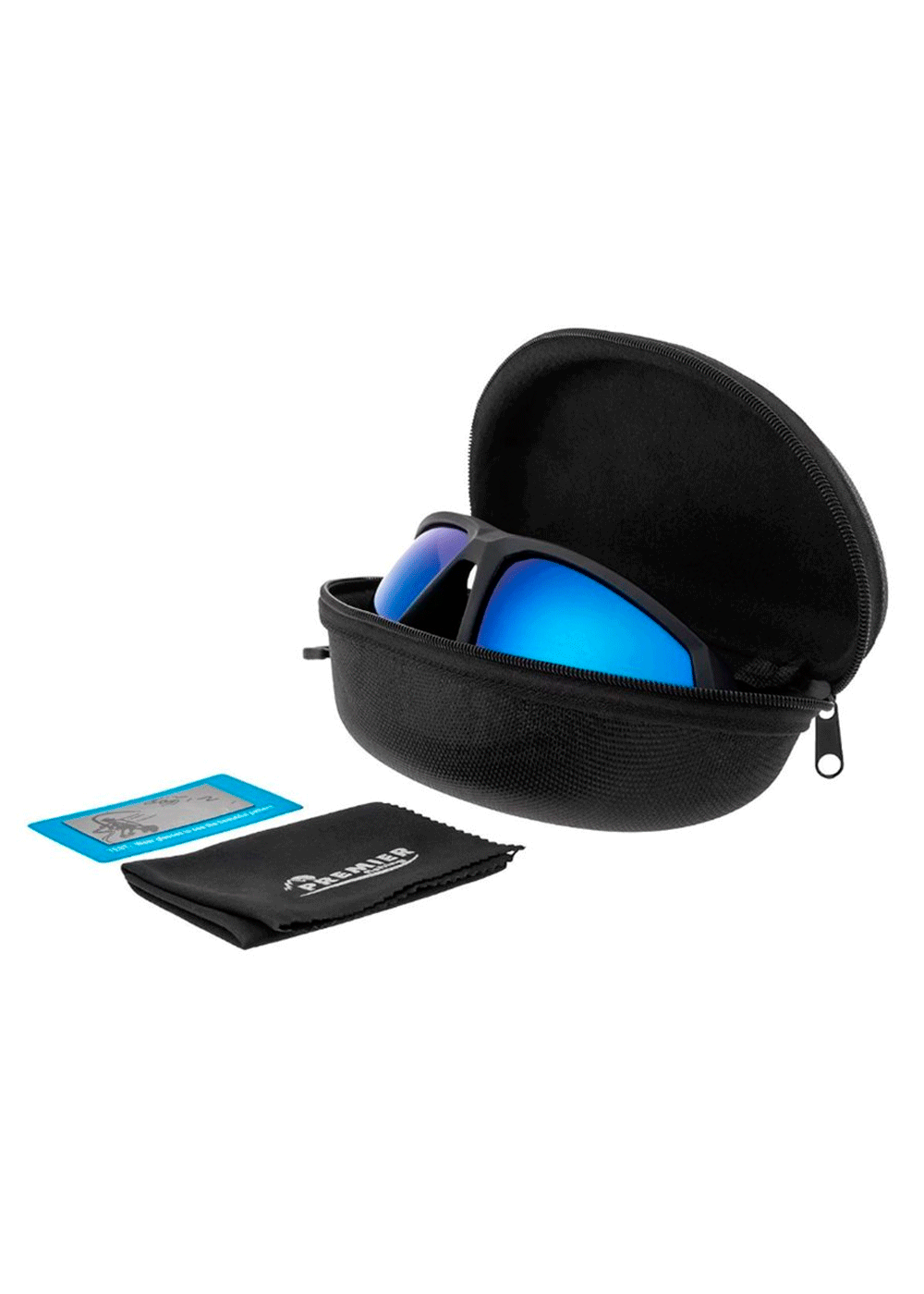 Футляр, салфетка для протирания линз и карточка с тестом на поляризацию в комплекте.