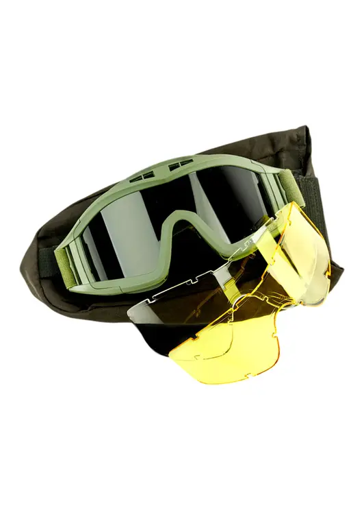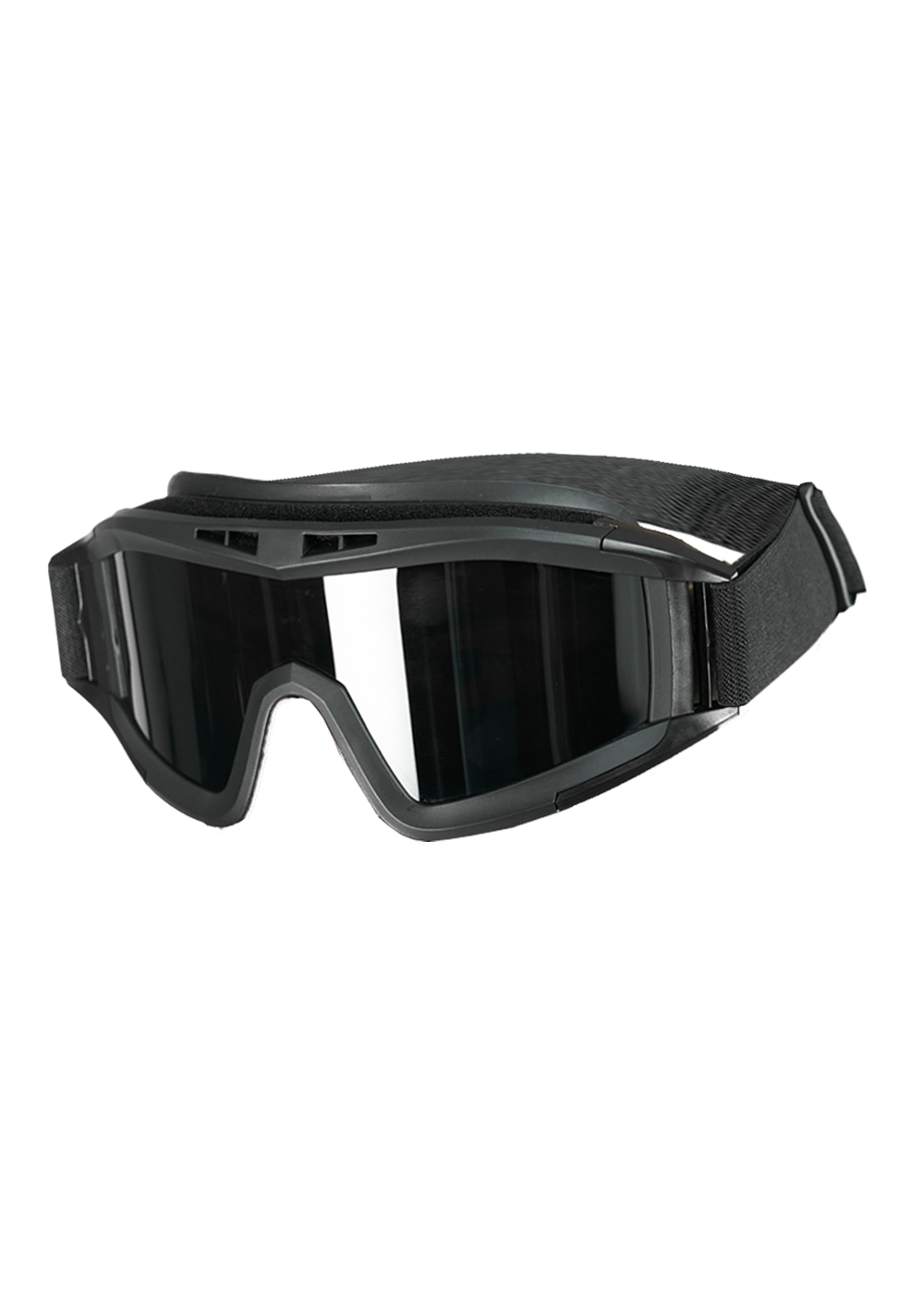 Тактические очки «ЦИКЛОП» чёрного цвета — модульная система баллистической защиты глаз с возможностью трансформации из стрелковых очков в очки закрытого типа. Очки оснащены поликарбонатными линзами, обеспечивающими защиту от быстролетящих частиц и ультрафиолетового излучения. Конструкция включает улучшенную систему вентиляции с специальными прорезями в оправе и трёхточечное крепление для надёжной фиксации на лице.