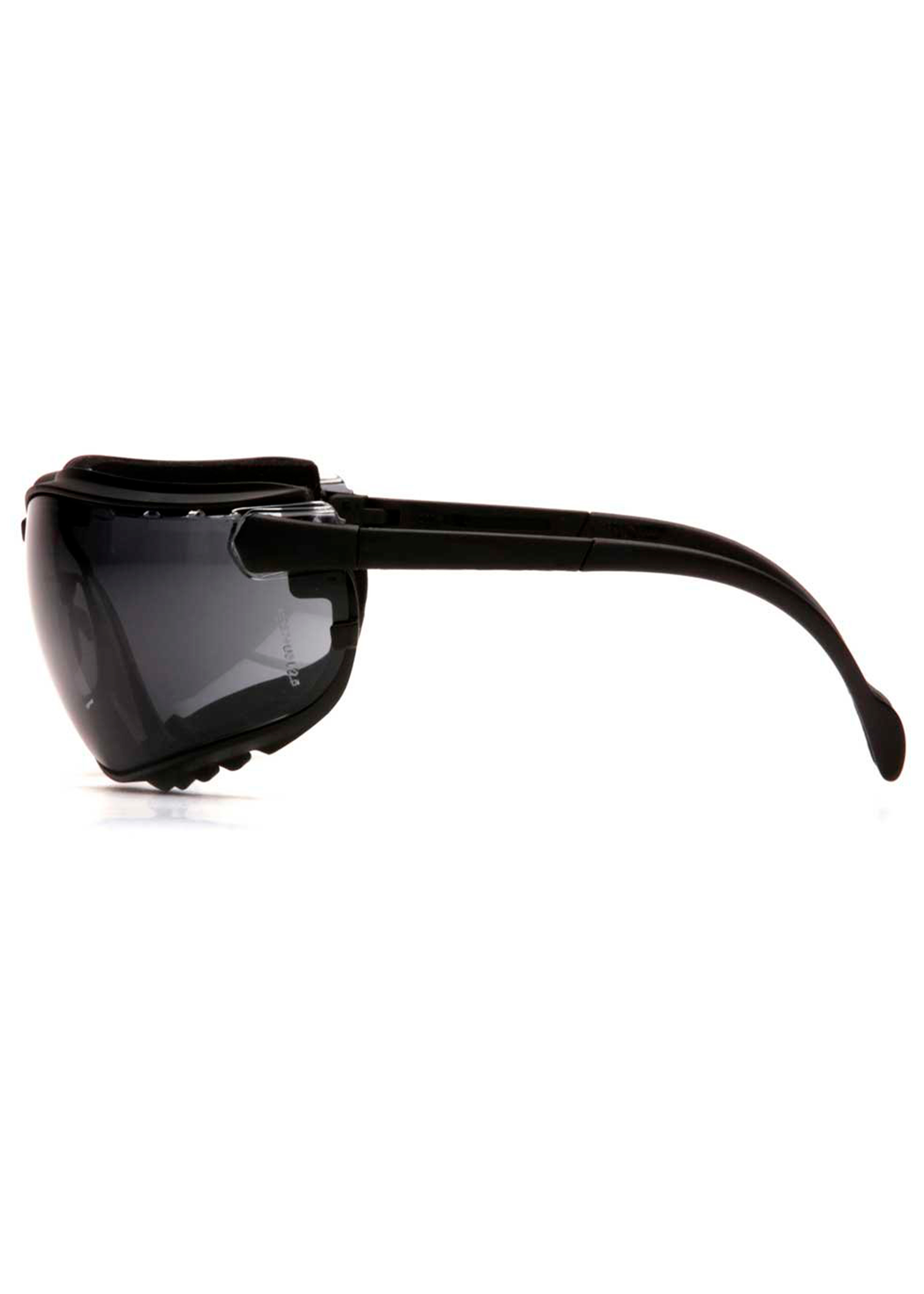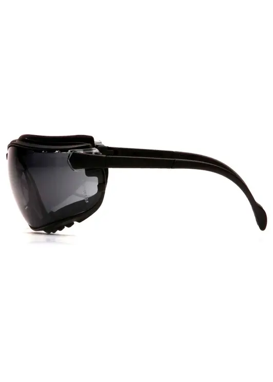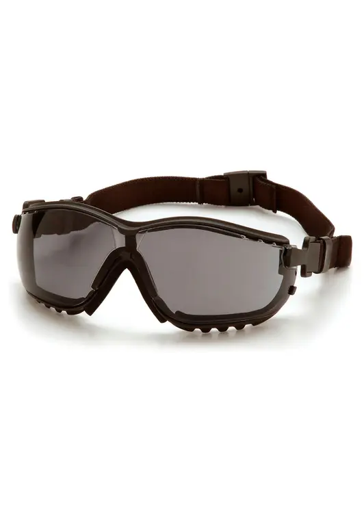 Очки V2G GB1820ST — это тактические очки от компании Pyramex. Они имеют серые ударопрочные поликарбонатные линзы с светопропускаемостью 23 % и обеспечивают защиту глаз спереди и сбоку от частиц, летящих со скоростью 400 м/с. Очки оснащены вентилируемой оправой с поролоновой вставкой по всему контуру, регулировкой резиновых дужек по наклону и съёмной резинкой с замком для жёсткой фиксации. Также предусмотрена возможность установки диоптрической вставки.