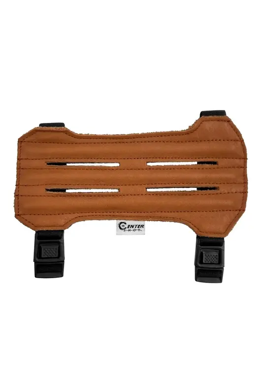 Крага Centershot 19см надевается на внутреннюю часть предплечья для защиты руки и элементов одежды от контакта с тетивой. Крага фиксируется на предплечье с помощью двух эластичных ремешков с застежками "Фастекс". Разработана для профессиональной охоты с луком, но также используется для традиционной или спортивной стрельбы.