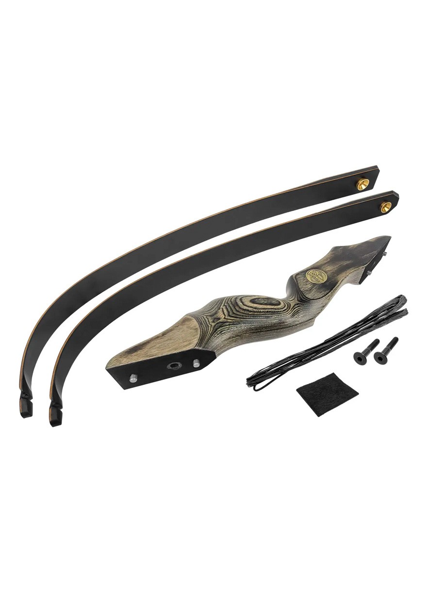 Традиционный рекурсивный лук Centershot Raven - отличный выбор как для опытного, так и для начинающего лучника. Рукоятка выполнена из клееных ламелей ольхи, плечи из эбенового дерева и клена, ламинированные фиберглассом. При размере лука в 144 сантиметра, рукоятка довольно короткая и тяжелая, что положительно сказывается на стабилизации лука при выстреле и плавности растягивании плеч. Конструкция лука разборная, что упрощает его хранение и транспортировку. В комплект к луку идет тетива, шерстяная полочка и шестигранник.