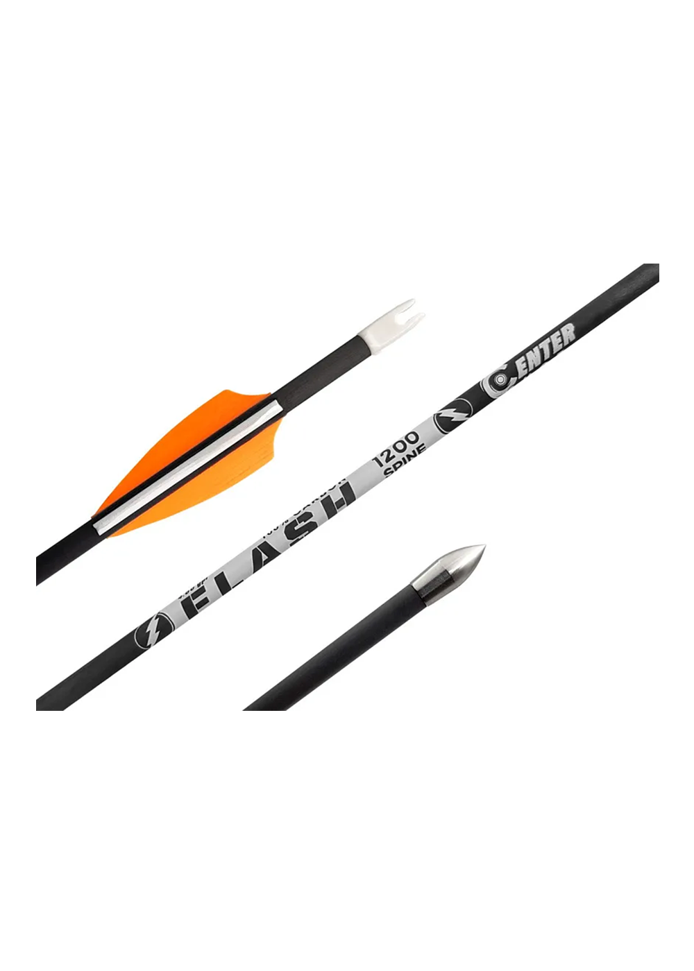 Centershot Flash тонкие спортивные стрелы соревновательного уровня из 100% карбона. Прямизна (straightness) составляет не более 0.006 дюйма от идеальной прямой, что позволяет лучнику быть уверенным в стабильности и кучности своей стрельбы. Стрелы оснащены высококачественными компонентами: никелированными спортивными наконечниками, рифленым скоростным оперением и хвостовиками. Опционально стрелы можно комплектовать спортивными хвостовиками, устанавливаемыми на алюминиевые пины. Все дополнительные компоненты есть в продаже. Линейка спайна (жесткости) варьируется от 350 до 1500, что позволит подобрать стрелу под любую растяжку и силу натяжения. Для удобства различия стрел по спайну, каждый вид стрел оснащается своим цветом оперения и хвостовика. Наконечники в трубку не вклеены.
