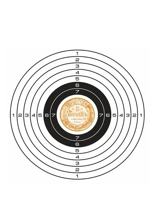 Мишень бумажная QUARTA «5 Копеек» — тренировочная мишень для стрельбы из пневматического оружия с историческим дизайном.