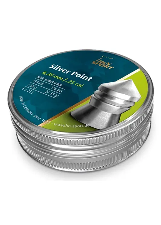 Пули для пневматического оружия калибра 6,35 мм, масса 1,58 г, упаковка 150 штук. Изготовлены из свинцового сплава, имеют заостренный кончик для улучшенного проникновения и точности стрельбы. Подходят для использования в винтовках и пистолетах пневматического типа.