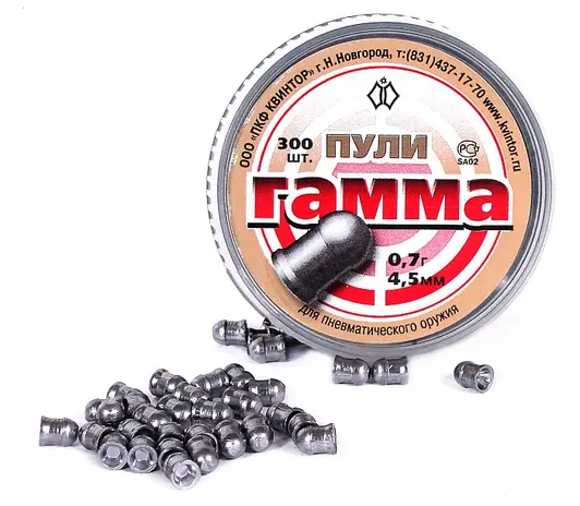 Пули Гамма 4.5 мм под номером 1 представляют линейку тяжелых боеприпасов в .177 калибре. В этом случае модель отличается наименьшим весом, если сравнивать с другими образцами указанной серии. Масса 0.7 г делает пулю устойчивее к сопротивлению воздуха, но при этом заряд не становится избыточным для винтовки средней мощности.