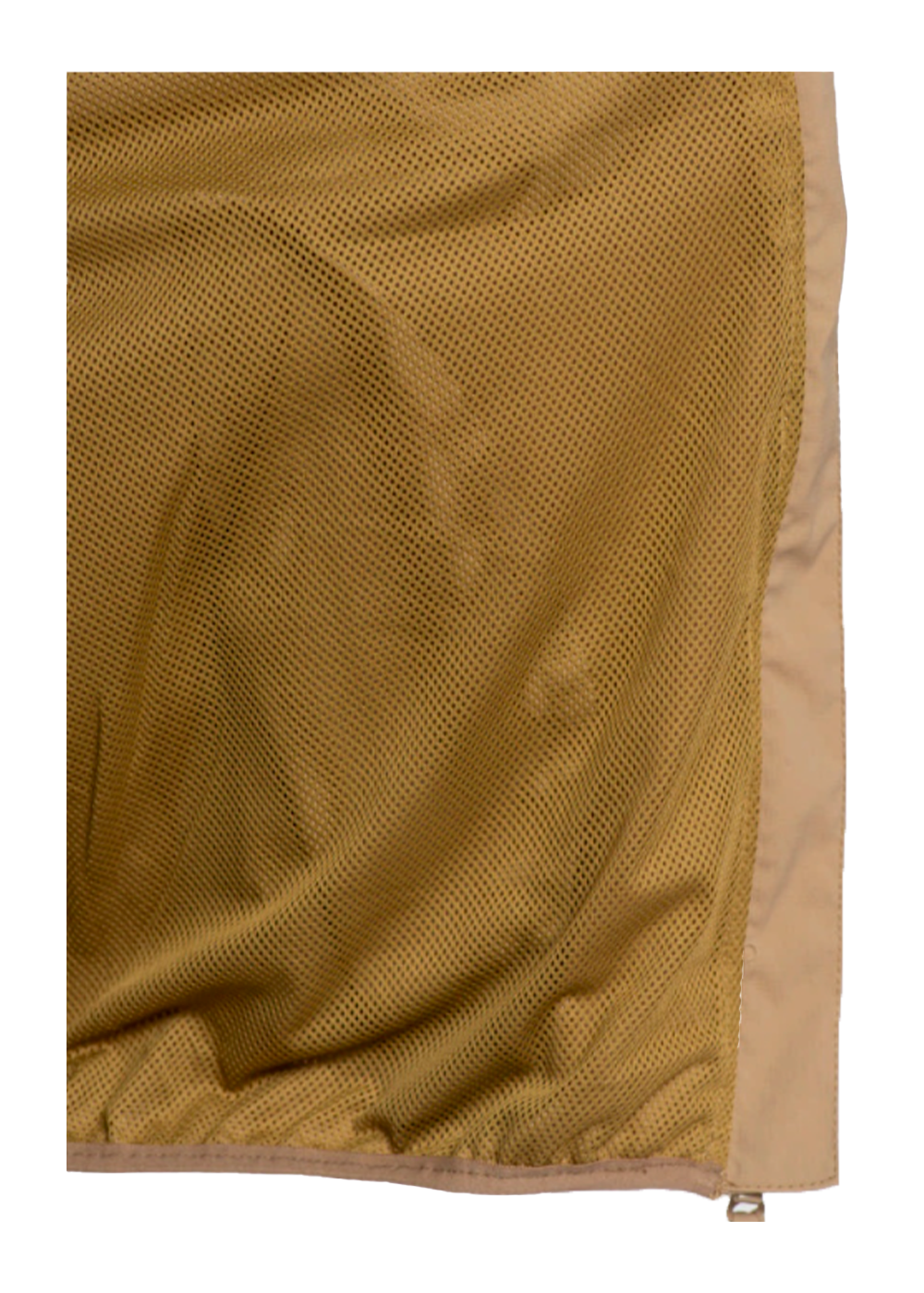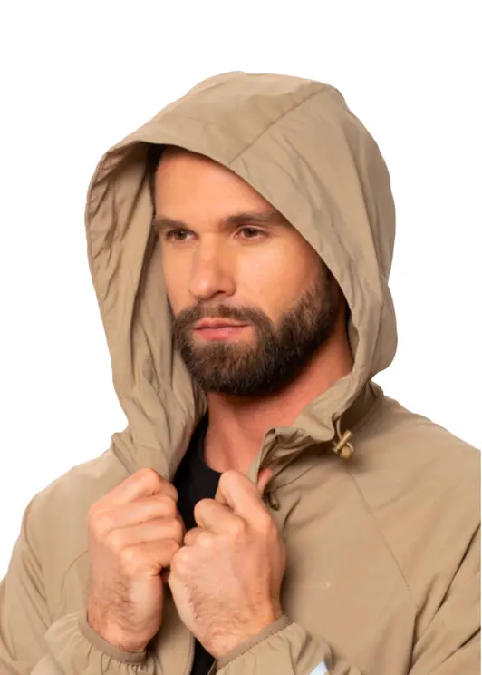 Ветровка выполнена из Нейлона полностью искусственного, но безопасного материала: нейлон обеспечивает: легкость, прочность, износостойкость, простоту в уходе; эластан добавляет пластичности к анатомическому построению. Имеет комбинированную структуру – рип-стоп, которая повышает разрывные нагрузки материала. Отделка WR защищает от грязи и пыли. Небольшой вес ткани обеспечивает легкость ношения в жаркое время года.