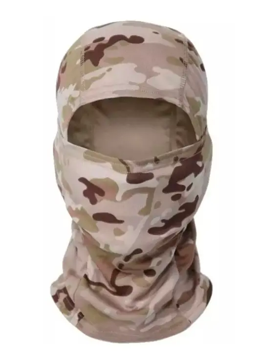 Легкая балаклава (тактическая маска) от компании Professional Military eXtreme - летнего типа, но может использоваться в любое время года в качестве основного или дополнительного головного убора. Особенно понравится эта модель охотникам и любителями военно-спортивных игр. Балаклава отлично защищает голову от ветра и солнца, предохраняет дыхательные пути от попадания в них посторонних частиц. Кроме основного варианта, балаклава может использоваться как шарф или подшлемник. Маска выполнена из спандекса (синтетический материал на основе полиуретана), размер - универсальный, цвет - камуфляжный (MultiCam пустынный).