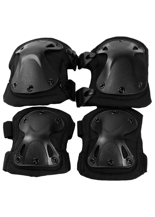 Универсальные тактические наколенники и налокотники предназначены для защиты от ударов или иных ситуаций. Регулируются при помощи стропы, под любой размер. Данный защитный комплект состоит из двух наколенников и двух налокотников. Надежно защитит Вас от травм. Данный комплект защиты легко одевается и надежно держится. Необходимый элемент экипировки для военных, любителей играть в пейнтбол и страйкбол, байкеров, роллеров, велосипедистов и других людей, ведущих активный образ жизни.