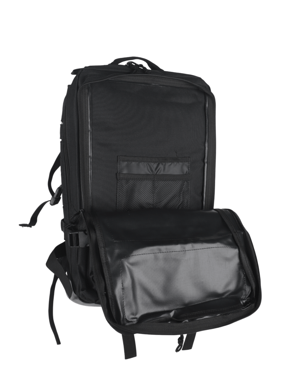 Тактический рюкзак WZ-916 (черный) - профессиональная модульная система для спецопераций, охоты и экстремального туризма. Функциональный и надежный аксессуар для активного образа жизни.Рюкзак выполнен из влагостойкого и прочного нейлона, что обеспечивает долговечность и надежность изделия. Анатомические лямки и спинка рюкзака обеспечивают комфортное ношение даже при длительных переходах. Жесткое дно и ортопедическая спинка защищают содержимое рюкзака от повреждений.Поддержка системы MOLLE позволяет легко крепить дополнительные аксессуары, такие как крепление треккинговых палок. Липучка под эмблему позволяет персонализировать рюкзак.