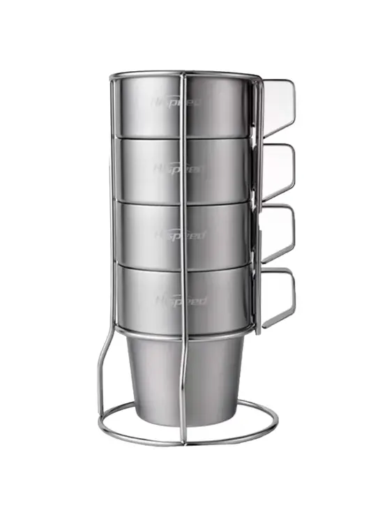 Набор кружек HiSpeed из нержавеющей стали — практичный и надёжный комплект для активного отдыха.В набор входят 4 кружки объёмом 300 мл каждая и удобная подставка для компактного хранения.Изготовленные из прочной нержавеющей стали, кружки идеально подходят для кемпинга, путешествий и повседневного использования.