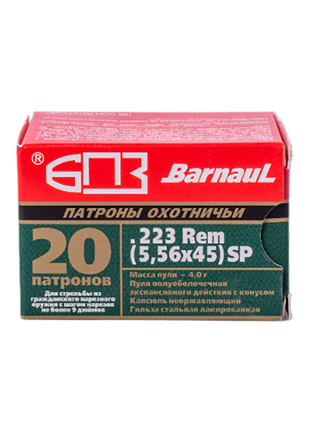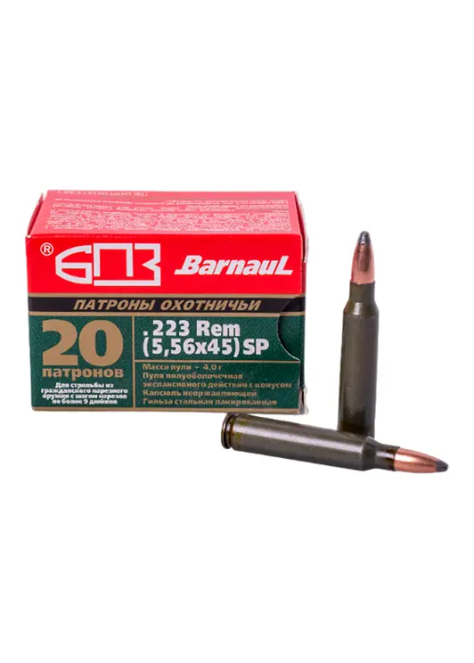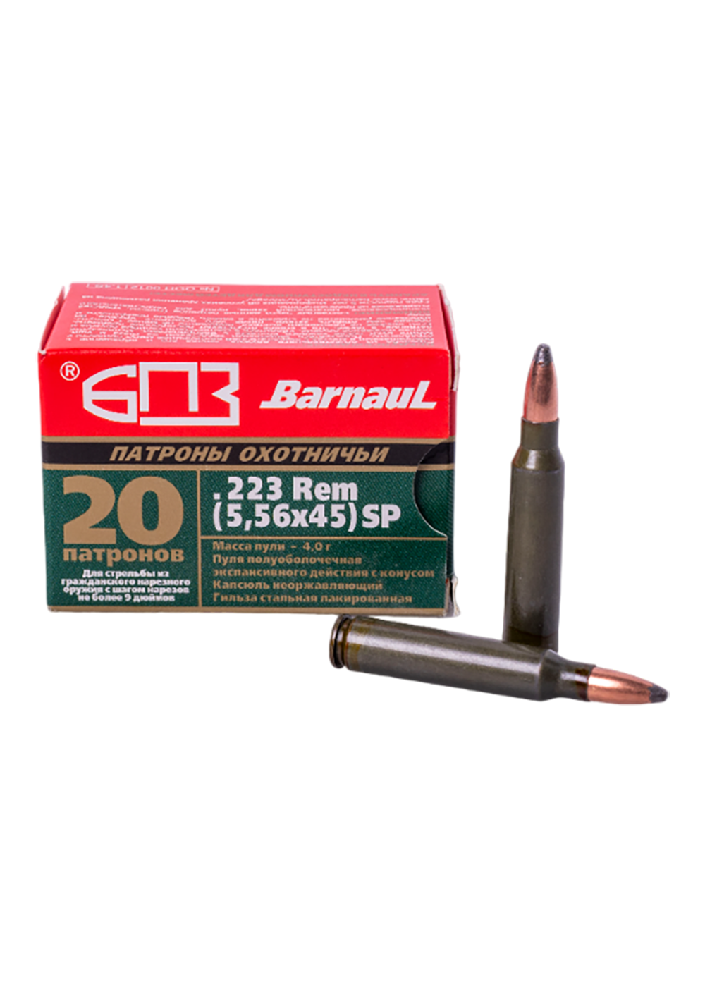 Патрон нарезной БПЗ кал. 5,56х45 SP лак. гильза 4,0 гр. (в пачке 20 шт.) (в коробке 500 шт.)