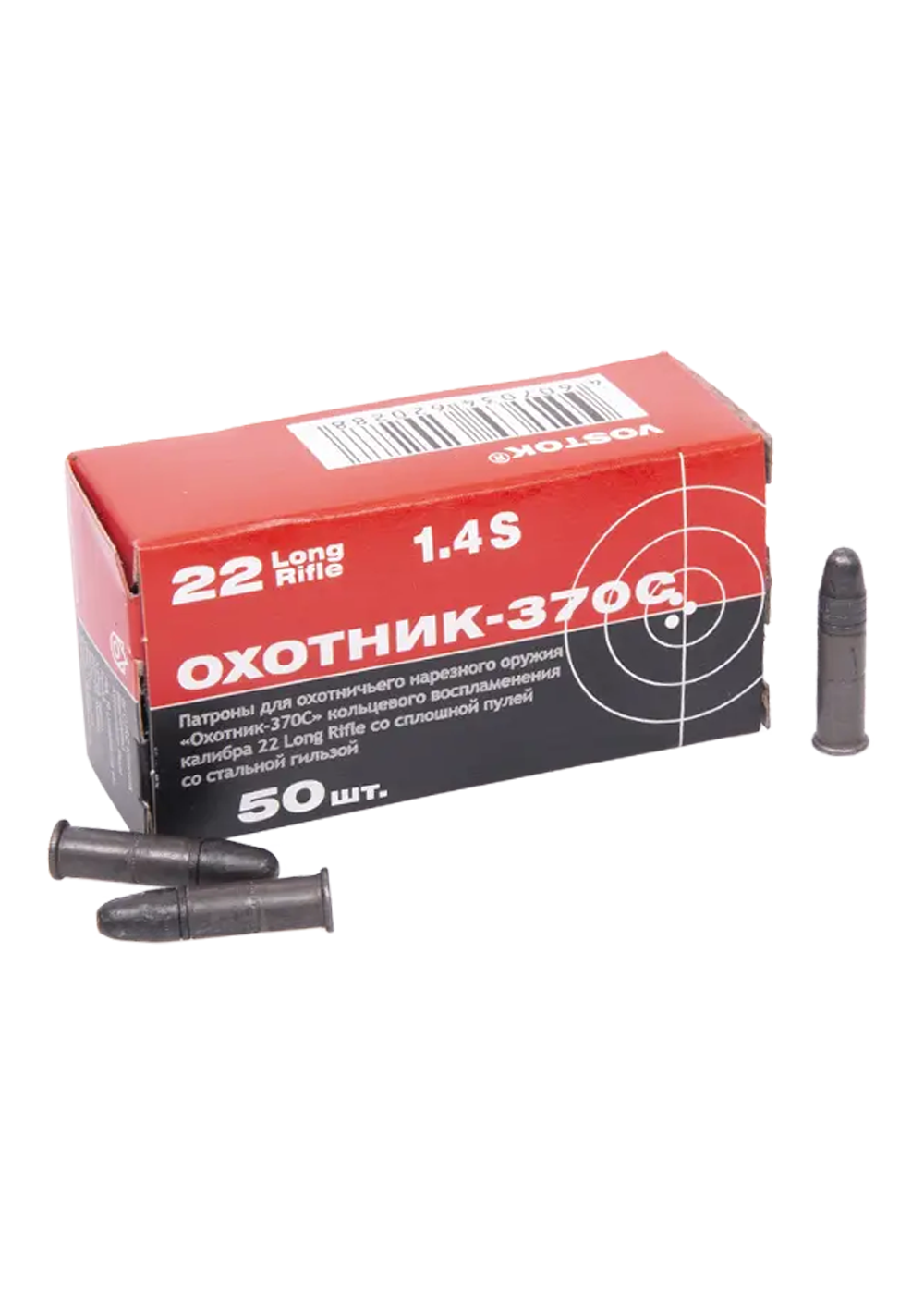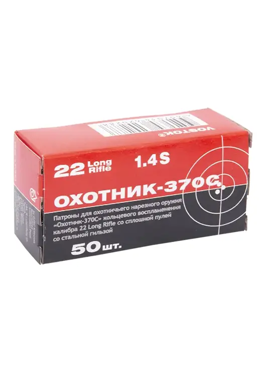 Патрон нарезной КСПЗ кал. 5,6(22LR) Охотник 370 С с латунной гильзой (в пачке 50 шт.) (в кор 5000)