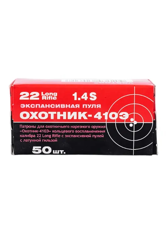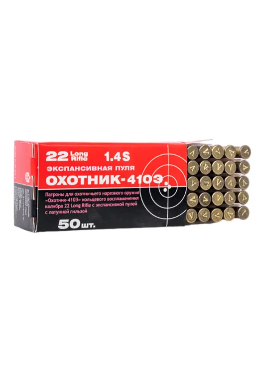 Патрон нарезной КСПЗ кал. 5,6(22LR) Охотник 410 Э с латунной гильзой (в пачке 50 шт.) (в кор 5000)