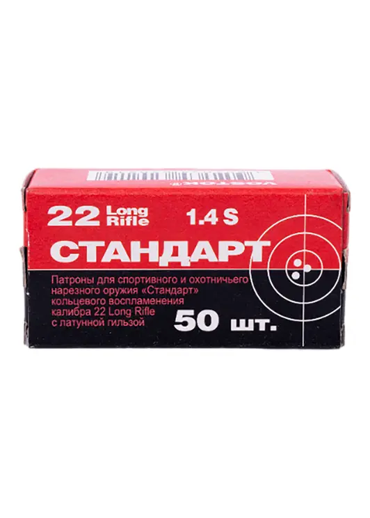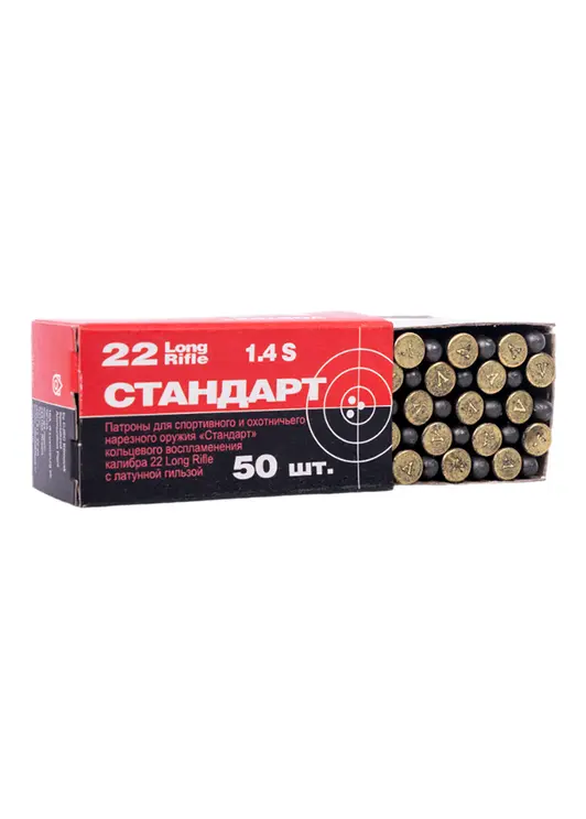 Патрон нарезной КСПЗ кал. 5,6(22LR) Стандарт-Л с лат. гильзой ( в пачке 50 шт.) (в коробке 5400)