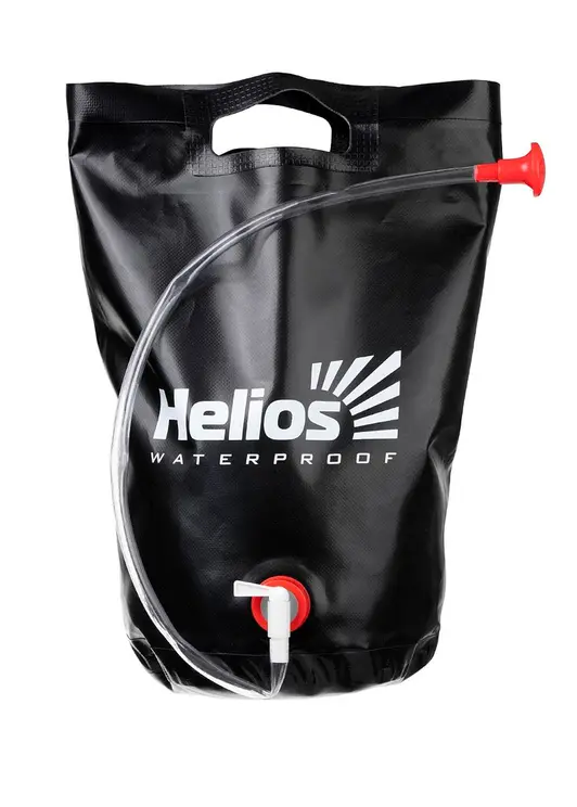 Портативный ведро-душ торговой марки Helios позволит освежиться и принять душ в походных условиях, на рыбалке, на даче. Благодаря черному цвету резервуара, вода быстро нагреется до комфортной температуры. Изделие состоит из ведра из прочной и износостойкой ПВХ-ткани плотностью 650г/м.кв и встроенным краном и гибким шлангом, на конце которого закреплена душевая лейка. За счет плоского дна, ведро с водой устойчиво стоит на поверхности, а также можно подвесить за прорезные ручки на ветку или крючок.