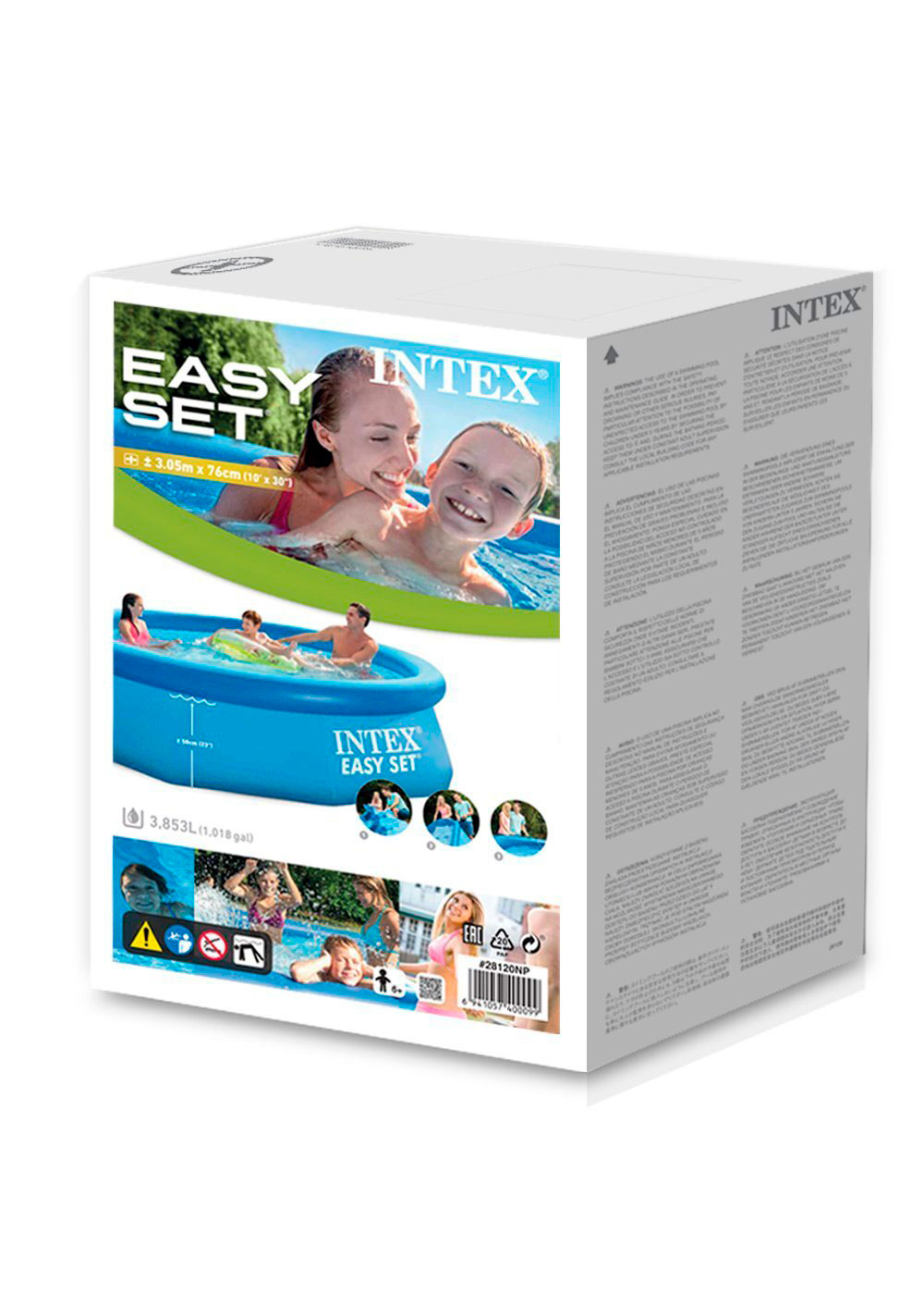 Круглый надувной бассейн имеет небольшую глубину 58 см (от надувного кольца), а значит, в нём могут купаться даже дети. Конструкция бассейна безопасна и устойчива. Необходимо разложить бассейн, надуть верхнее кольцо и наполнить его водой. По мере наполнения бассейна, надувное кольцо поднимается вместе с уровнем воды и расправляет стенки. Объем 3853л при 90% заполнении Для установки бассейна нужна плоская, горизонтальная площадка. Процесс установки бассейна занимает не более 10 минут. Бассейн снизу оборудован сливным клапаном.