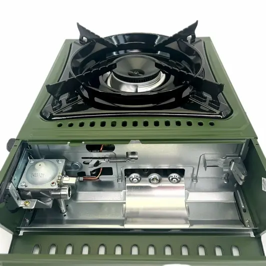 Походная газовая плита Ice Cube GS-2900HC удобна для приготовления пищи на природе. Легко помещается в кейсе, что обеспечивает компактность и простоту транспортировки. Плита разработана с учетом потребностей путешественников, ее корпус выполнен из нержавеющей стали, не деформирующейся при высокой температуре. Благодаря ветрозащищенной конструкции пользоваться плитой можно даже в сложных погодных условиях. Механизм аварийного отключения при избыточном газовом давлении гарантирует безопасность в процессе эксплуатации. Газовая система стабильна при разных климатических условиях, а удобный пьезоподжигом облегчает розжиг.