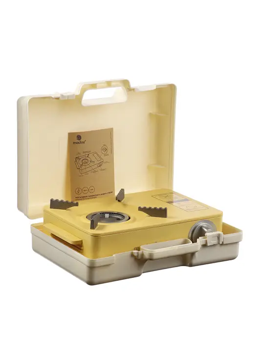 Портативная газовая плита Maclay в бежевом цвете предназначена для кемпинга и приготовления пищи в походных условиях, имеет компактные размеры 20×32.5×10.5 см и выполнена из прочного алюминиевого сплава. Модель оборудована системой пьезоэлектрического поджига, регулятором интенсивности пламени и надёжным креплением для газового баллона. Плита обеспечивает стабильную работу при высокой температуре горения и выдерживает нагрузку до 5 кг. Эргономичный дизайн и практичный бежевый цвет делают устройство удобным в использовании, а продуманная конструкция гарантирует безопасность при эксплуатации. В комплект входит защитный чехол для транспортировки и хранения.