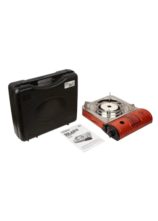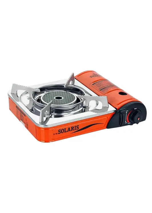 Портативная газовая плита SOLARIS TS-700 с керамической конфоркой — надёжный туристический прибор для приготовления пищи в походных условиях, оснащённый защитным кейсом для транспортировки. Плита оборудована системой пьезоподжига и работает от стандартного цангового газового баллона, имеет мощность 1,85 кВт при расходе газа 135 г/час. Керамическая поверхность обеспечивает равномерный нагрев и защиту от задувания ветром, а встроенные системы безопасности включают защиту от неправильной установки баллона, предохранительный клапан избыточного давления и защиту от утечки газа.