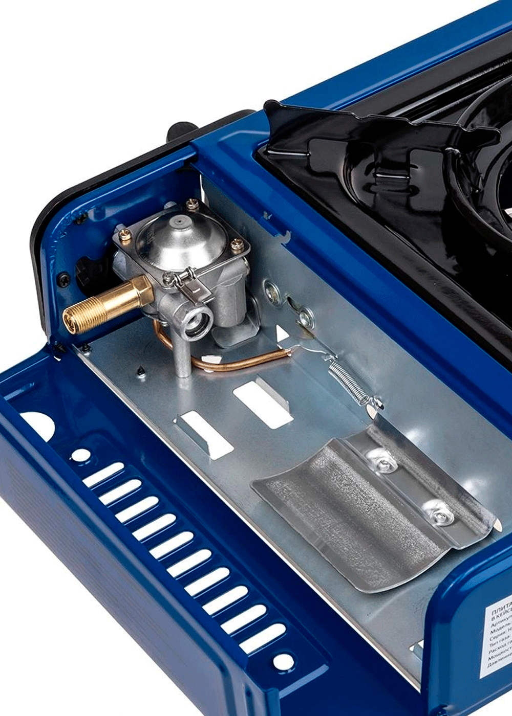 Плита газовая портативная в кейсе HS-BDZ-168C-P предназначена для приготовления пищи или кипячения воды на пикнике, в походе, на дачном участке, во время отдыха на природе или в дальней дороге. Механизм подогрева газ баллона - специальная пластина высокой теплопроводности. Обеспечивает полное использование газа в баллоне и стабильную работу плиты в холодное время года. Плита очень легка и удобна в использовании. Работает как от стандартного одноразового газового баллона, который размещается внутри плиты, так и от бытового баллона (5-50 л.), который подсоединяется шлангом.