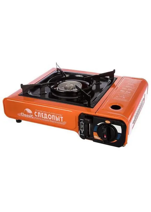Портативная газовая плитка Следопыт-ClassiC используется для приготовления пищи на домашней кухне, в дачном доме или на природе. Сама плита оборудована одной горелкой с круговым образованием пламени, имеет пьезоэлектрический розжиг и блок управления подачей газа. Запрещается! Использование двух плит для нагрева одной емкости. Использование посуды большого диаметра. Перемещение работающей плиты. Газовый баллон в комплект не входит.