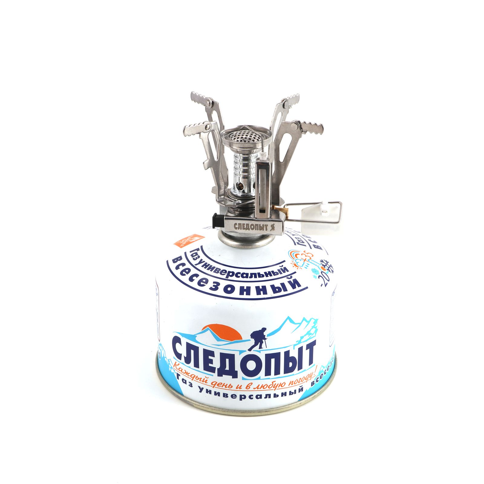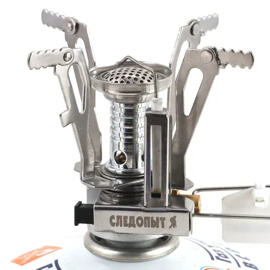 Плита портативная газовая "Следопыт - Спутник" - одна из самых легких портативных газовых плит весом 95 грамм с мощностью 2 кВт и расходом газа 140 г/час. В сложенном виде компактно размещается в пластиковом кейсе, который защищает плиту от повреждений и попадания влаги. Для питания плиты используются газовые смеси в баллонах с резьбовым клапаном. Используя переходник (приобретается отдельно), возможно подключение плиты к цанговому баллону. Рекомендуется использовать в качестве индивидуальной портативной плиты для 1-2 человек. Горелка имеет пьезоэлектрический розжиг и систему предотвращения задувания пламени сильными порывами ветра. Идеальна для пеших путешествий или как аварийный комплект к основному оборудованию. Максимальная нагрузка составляет 5 кг. Максимальный диаметр посуды 15 см.