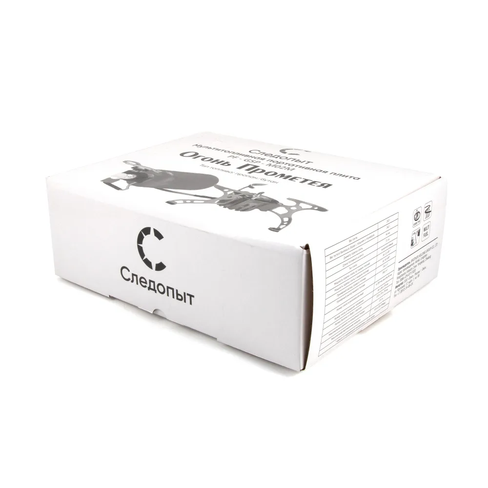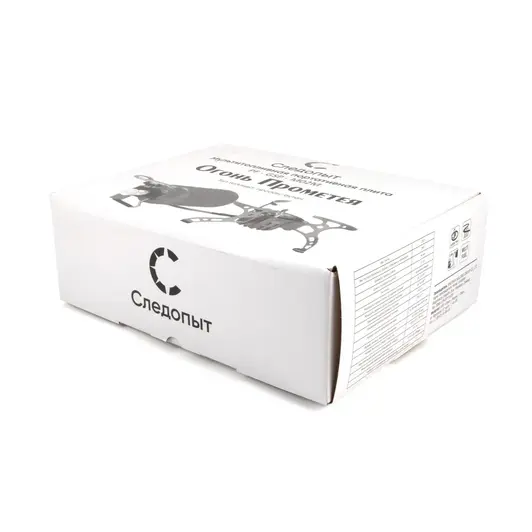 Плита портативная мультитопливная «Следопыт - Огонь Прометея-1». Плита предназначена для круглогодичного и всепогодного использования в бытовых целях вне помещений. Вобрав все лучшее от своего предшественника, этот прибор имеет целый ряд усовершенствований, доработок и дополнений. Вместе с плитой поставляется ремонтный комплект, который состоит из запасных резинового уплотнителя и поршня для насоса, сменного жиклера и многофункционального ключа, предназначенного для разборки и чистки прибора. Для подачи жидкого топлива в горелку плиты, имеется топливная фляга объемом 0,5 литра. Использование этого топлива увеличит сроки чистки плиты и обеспечит долговременную бесперебойную работу оборудования. Между циклами кипячения/варки рекомендуется выдерживать время, необходимое для полного охлаждения прибора.